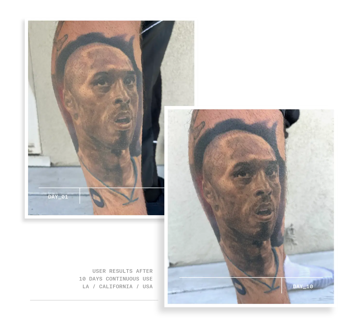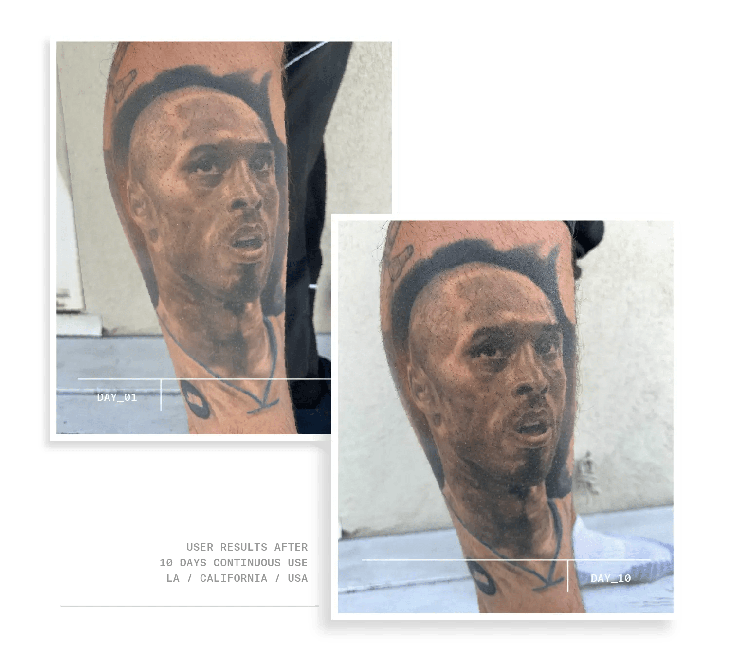 *Consumer trial (conducted in Sydney / LA) with 20 participants using LUME as intructed for 10 consecutive days on black/grey/colour tattoos 5+ years old.