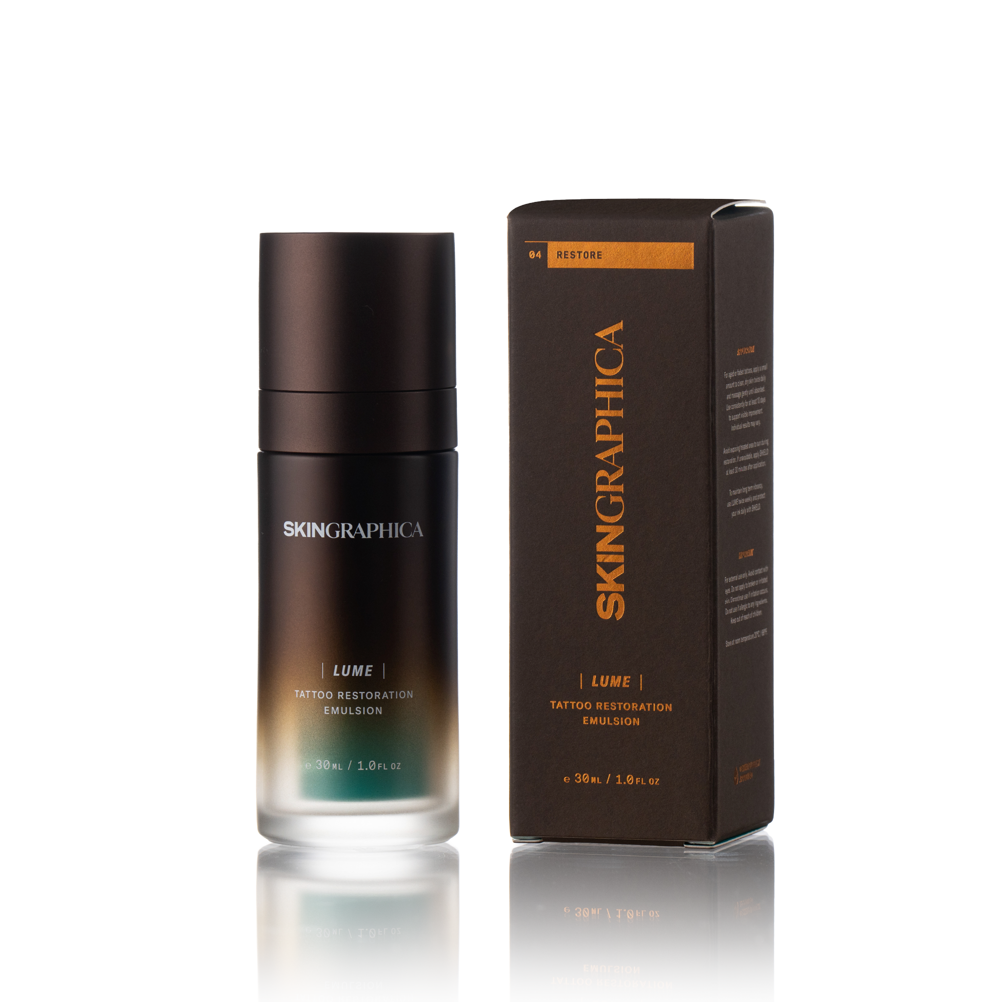 本品蘊含光擴散劑、溫和更新活性成分及滋養潤膚劑,能平滑肌膚並提供滋養,同時不影響色素沉澱。對於五年以上褪色的刺青尤其有效LUME 使其顯得更明亮、輪廓更清晰、色彩更鮮活。質地輕盈且快速吸收,在強化墨色的同時,更能維持肌膚柔韌彈性,打造持久效果。